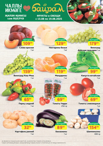 На текущей страничке можно найти просмотреть конкретные интересные предложения от супермаркетов Челны-хлеб . Мы опубликовали акцию Фрукты и овощи, действие которой начинается 13 Августа и заканчивается 19 Августа. Поэтому если Вы житель города Заинск либо же его гость, детальненько изучите данные предложения. Вполне возможно, здесь есть именно те скидки в супермаркетах, что Вы так давно и безутешно искали. Вооружитесь знаниями и вперед в ближайший к Вам магазин на шопинг! Только будьте бдительны и внимательно смотрите на дату, вдруг акция уже закончилась или еще не началась.