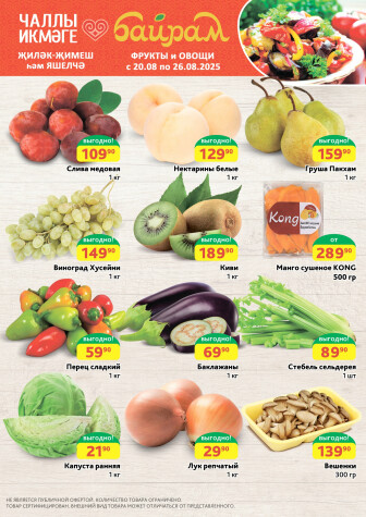 На текущей страничке можно найти просмотреть конкретные интересные предложения от супермаркетов Челны-хлеб . Мы опубликовали акцию Фрукты и овощи, действие которой начинается 20 Августа и заканчивается 26 Августа. Поэтому если Вы житель города Заинск либо же его гость, детальненько изучите данные предложения. Вполне возможно, здесь есть именно те скидки в супермаркетах, что Вы так давно и безутешно искали. Вооружитесь знаниями и вперед в ближайший к Вам магазин на шопинг! Только будьте бдительны и внимательно смотрите на дату, вдруг акция уже закончилась или еще не началась.