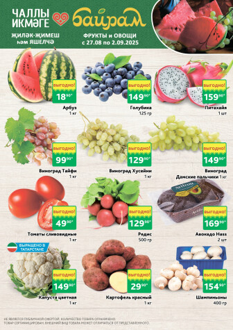На текущей страничке можно найти просмотреть конкретные интересные предложения от супермаркетов Челны-хлеб . Мы опубликовали акцию Фрукты и овощи, действие которой начинается 27 Августа и заканчивается 2 Сентября. Поэтому если Вы житель города Заинск либо же его гость, детальненько изучите данные предложения. Вполне возможно, здесь есть именно те скидки в супермаркетах, что Вы так давно и безутешно искали. Вооружитесь знаниями и вперед в ближайший к Вам магазин на шопинг! Только будьте бдительны и внимательно смотрите на дату, вдруг акция уже закончилась или еще не началась.