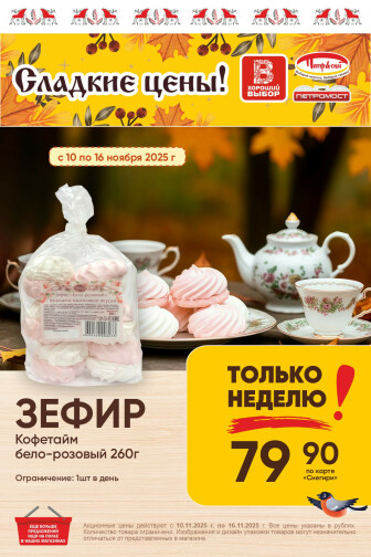 . Мы опубликовали акцию Только неделю!, действие которой начинается 10 Ноября и заканчивается 16 Ноября. Поэтому если Вы житель города Архангельск либо же его гость, детальненько изучите данные предложения. Вполне возможно, здесь есть именно те скидки в супермаркетах, что Вы так давно и безутешно искали. Вооружитесь знаниями и вперед в ближайший к Вам магазин на шопинг! Только будьте бдительны и внимательно смотрите на дату, вдруг акция уже закончилась или еще не началась.