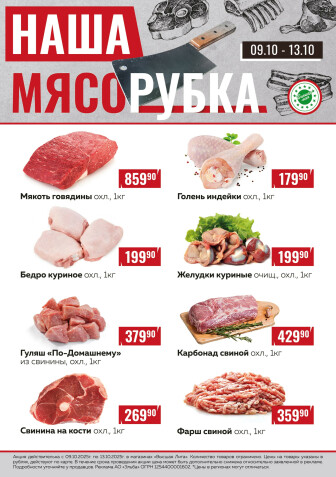 . Мы опубликовали акцию Наша мясорубка, действие которой начинается 9 Октября и заканчивается 13 Октября. Поэтому если Вы житель города Георгиевское либо же его гость, детальненько изучите данные предложения. Вполне возможно, здесь есть именно те скидки в супермаркетах, что Вы так давно и безутешно искали. Вооружитесь знаниями и вперед в ближайший к Вам магазин на шопинг! Только будьте бдительны и внимательно смотрите на дату, вдруг акция уже закончилась или еще не началась.