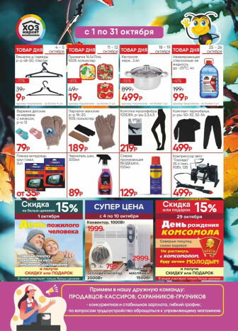 . Мы опубликовали акцию Акции, действие которой начинается 1 Октября и заканчивается 31 Октября. Поэтому если Вы житель города Ижевск либо же его гость, детальненько изучите данные предложения. Вполне возможно, здесь есть именно те скидки в супермаркетах, что Вы так давно и безутешно искали. Вооружитесь знаниями и вперед в ближайший к Вам магазин на шопинг! Только будьте бдительны и внимательно смотрите на дату, вдруг акция уже закончилась или еще не началась.