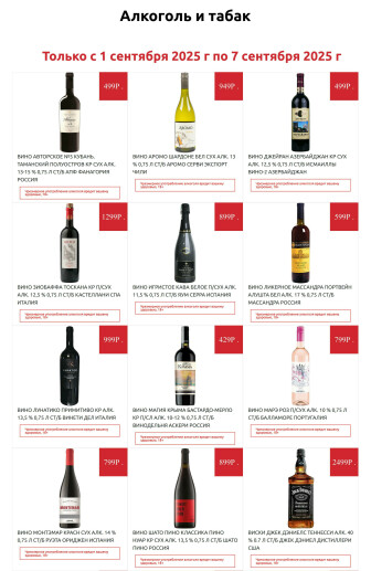 . Мы опубликовали акцию Алкоголь, действие которой начинается 1 Сентября и заканчивается 7 Сентября. Поэтому если Вы житель города Калининград либо же его гость, детальненько изучите данные предложения. Вполне возможно, здесь есть именно те скидки в супермаркетах, что Вы так давно и безутешно искали. Вооружитесь знаниями и вперед в ближайший к Вам магазин на шопинг! Только будьте бдительны и внимательно смотрите на дату, вдруг акция уже закончилась или еще не началась.