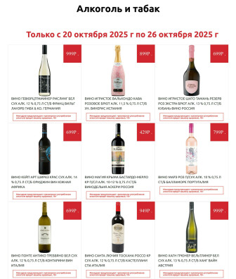 . Мы опубликовали акцию Алкоголь, действие которой начинается 20 Октября и заканчивается 26 Октября. Поэтому если Вы житель города Калининград либо же его гость, детальненько изучите данные предложения. Вполне возможно, здесь есть именно те скидки в супермаркетах, что Вы так давно и безутешно искали. Вооружитесь знаниями и вперед в ближайший к Вам магазин на шопинг! Только будьте бдительны и внимательно смотрите на дату, вдруг акция уже закончилась или еще не началась.
