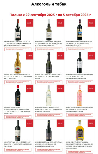 . Мы опубликовали акцию Алкоголь, действие которой начинается 29 Сентября и заканчивается 5 Октября. Поэтому если Вы житель города Калининград либо же его гость, детальненько изучите данные предложения. Вполне возможно, здесь есть именно те скидки в супермаркетах, что Вы так давно и безутешно искали. Вооружитесь знаниями и вперед в ближайший к Вам магазин на шопинг! Только будьте бдительны и внимательно смотрите на дату, вдруг акция уже закончилась или еще не началась.