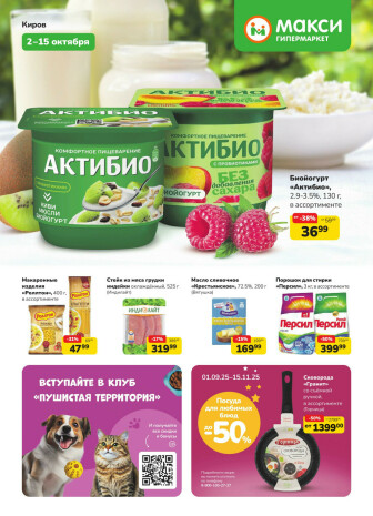 . Мы опубликовали акцию Каталог (скидка предоставляется при наличии карты "Макси"), действие которой начинается 2 Октября и заканчивается 15 Октября. Поэтому если Вы житель города Киров либо же его гость, детальненько изучите данные предложения. Вполне возможно, здесь есть именно те скидки в супермаркетах, что Вы так давно и безутешно искали. Вооружитесь знаниями и вперед в ближайший к Вам магазин на шопинг! Только будьте бдительны и внимательно смотрите на дату, вдруг акция уже закончилась или еще не началась.