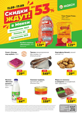 . Мы опубликовали акцию Скидки ждут! (скидка предоставляется при наличии карты "Макси"), действие которой начинается 11 Сентября и заканчивается 17 Сентября. Поэтому если Вы житель города Киров либо же его гость, детальненько изучите данные предложения. Вполне возможно, здесь есть именно те скидки в супермаркетах, что Вы так давно и безутешно искали. Вооружитесь знаниями и вперед в ближайший к Вам магазин на шопинг! Только будьте бдительны и внимательно смотрите на дату, вдруг акция уже закончилась или еще не началась.
