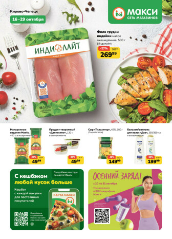 . Мы опубликовали акцию Каталог (скидка предоставляется при наличии карты "Макси"), действие которой начинается 16 Октября и заканчивается 29 Октября. Поэтому если Вы житель города Кирово-Чепецк либо же его гость, детальненько изучите данные предложения. Вполне возможно, здесь есть именно те скидки в супермаркетах, что Вы так давно и безутешно искали. Вооружитесь знаниями и вперед в ближайший к Вам магазин на шопинг! Только будьте бдительны и внимательно смотрите на дату, вдруг акция уже закончилась или еще не началась.