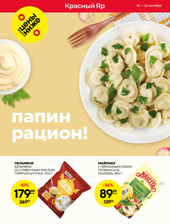 . Мы опубликовали акцию Каталог, действие которой начинается 16 Октября и заканчивается 22 Октября. Поэтому если Вы житель города Красноярск либо же его гость, детальненько изучите данные предложения. Вполне возможно, здесь есть именно те скидки в супермаркетах, что Вы так давно и безутешно искали. Вооружитесь знаниями и вперед в ближайший к Вам магазин на шопинг! Только будьте бдительны и внимательно смотрите на дату, вдруг акция уже закончилась или еще не началась.