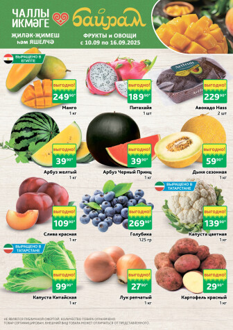 . Мы опубликовали акцию Фрукты и овощи, действие которой начинается 10 Сентября и заканчивается 16 Сентября. Поэтому если Вы житель города Набережные Челны либо же его гость, детальненько изучите данные предложения. Вполне возможно, здесь есть именно те скидки в супермаркетах, что Вы так давно и безутешно искали. Вооружитесь знаниями и вперед в ближайший к Вам магазин на шопинг! Только будьте бдительны и внимательно смотрите на дату, вдруг акция уже закончилась или еще не началась.