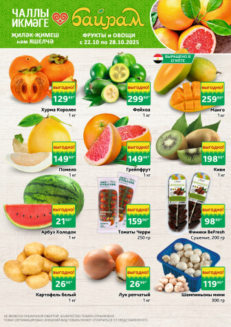 . Мы опубликовали акцию Фрукты и овощи, действие которой начинается 22 Октября и заканчивается 28 Октября. Поэтому если Вы житель города Набережные Челны либо же его гость, детальненько изучите данные предложения. Вполне возможно, здесь есть именно те скидки в супермаркетах, что Вы так давно и безутешно искали. Вооружитесь знаниями и вперед в ближайший к Вам магазин на шопинг! Только будьте бдительны и внимательно смотрите на дату, вдруг акция уже закончилась или еще не началась.
