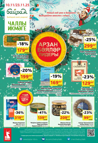 . Мы опубликовали акцию Каталог, действие которой начинается 10 Ноября и заканчивается 23 Ноября. Поэтому если Вы житель города Набережные Челны либо же его гость, детальненько изучите данные предложения. Вполне возможно, здесь есть именно те скидки в супермаркетах, что Вы так давно и безутешно искали. Вооружитесь знаниями и вперед в ближайший к Вам магазин на шопинг! Только будьте бдительны и внимательно смотрите на дату, вдруг акция уже закончилась или еще не началась.