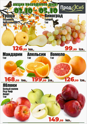 Текущие и будущие каталоги акций "Акции (3 - 5 Октября 2025)" супермаркетов ПродСиб Новосибирска