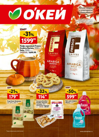 . Мы опубликовали акцию Каталог регулярных предложений, действие которой начинается 23 Октября и заканчивается 5 Ноября. Поэтому если Вы житель города Новосибирск либо же его гость, детальненько изучите данные предложения. Вполне возможно, здесь есть именно те скидки в супермаркетах, что Вы так давно и безутешно искали. Вооружитесь знаниями и вперед в ближайший к Вам магазин на шопинг! Только будьте бдительны и внимательно смотрите на дату, вдруг акция уже закончилась или еще не началась.