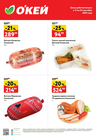 Текущие и будущие каталоги акций " Спецпредложения на колбасные изделия (11 - 24 Сентября 2025)" супермаркетов Окей гипермаркет Ростова-на-Дону