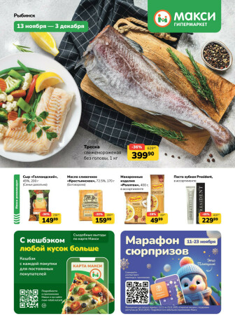 . Мы опубликовали акцию Каталог (скидка предоставляется при наличии карты "Макси"), действие которой начинается 13 Ноября и заканчивается 3 Декабря. Поэтому если Вы житель города Рыбинск либо же его гость, детальненько изучите данные предложения. Вполне возможно, здесь есть именно те скидки в супермаркетах, что Вы так давно и безутешно искали. Вооружитесь знаниями и вперед в ближайший к Вам магазин на шопинг! Только будьте бдительны и внимательно смотрите на дату, вдруг акция уже закончилась или еще не началась.