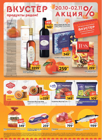 . Мы опубликовали акцию Каталог, действие которой начинается 20 Октября и заканчивается 2 Ноября. Поэтому если Вы житель города Санкт-Петербург либо же его гость, детальненько изучите данные предложения. Вполне возможно, здесь есть именно те скидки в супермаркетах, что Вы так давно и безутешно искали. Вооружитесь знаниями и вперед в ближайший к Вам магазин на шопинг! Только будьте бдительны и внимательно смотрите на дату, вдруг акция уже закончилась или еще не началась.