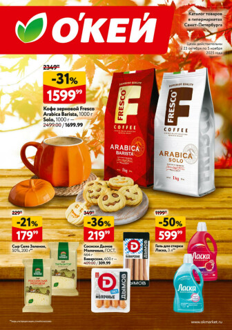 . Мы опубликовали акцию Каталог регулярных предложений, действие которой начинается 23 Октября и заканчивается 5 Ноября. Поэтому если Вы житель города Санкт-Петербург либо же его гость, детальненько изучите данные предложения. Вполне возможно, здесь есть именно те скидки в супермаркетах, что Вы так давно и безутешно искали. Вооружитесь знаниями и вперед в ближайший к Вам магазин на шопинг! Только будьте бдительны и внимательно смотрите на дату, вдруг акция уже закончилась или еще не началась.