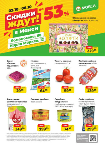 . Мы опубликовали акцию Скидки ждут! (скидка предоставляется при наличии карты "Макси"), действие которой начинается 2 Октября и заканчивается 8 Октября. Поэтому если Вы житель города Северодвинск либо же его гость, детальненько изучите данные предложения. Вполне возможно, здесь есть именно те скидки в супермаркетах, что Вы так давно и безутешно искали. Вооружитесь знаниями и вперед в ближайший к Вам магазин на шопинг! Только будьте бдительны и внимательно смотрите на дату, вдруг акция уже закончилась или еще не началась.