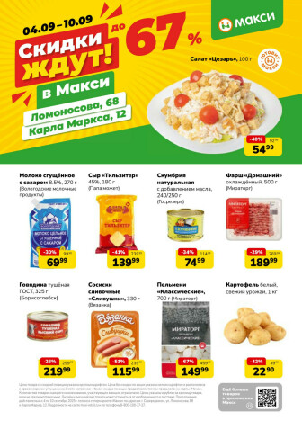 . Мы опубликовали акцию Скидки ждут! (скидка предоставляется при наличии карты "Макси"), действие которой начинается 4 Сентября и заканчивается 10 Сентября. Поэтому если Вы житель города Северодвинск либо же его гость, детальненько изучите данные предложения. Вполне возможно, здесь есть именно те скидки в супермаркетах, что Вы так давно и безутешно искали. Вооружитесь знаниями и вперед в ближайший к Вам магазин на шопинг! Только будьте бдительны и внимательно смотрите на дату, вдруг акция уже закончилась или еще не началась.