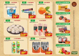 . Мы опубликовали акцию Скидки всю неделю(акция действует по картам Окей), действие которой начинается 6 Октября и заканчивается 12 Октября. Поэтому если Вы житель города Томск либо же его гость, детальненько изучите данные предложения. Вполне возможно, здесь есть именно те скидки в супермаркетах, что Вы так давно и безутешно искали. Вооружитесь знаниями и вперед в ближайший к Вам магазин на шопинг! Только будьте бдительны и внимательно смотрите на дату, вдруг акция уже закончилась или еще не началась.