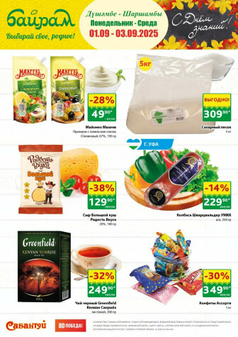 . Мы опубликовали акцию 3 выгодных дня!, действие которой начинается 1 Сентября и заканчивается 3 Сентября. Поэтому если Вы житель города Уфа либо же его гость, детальненько изучите данные предложения. Вполне возможно, здесь есть именно те скидки в супермаркетах, что Вы так давно и безутешно искали. Вооружитесь знаниями и вперед в ближайший к Вам магазин на шопинг! Только будьте бдительны и внимательно смотрите на дату, вдруг акция уже закончилась или еще не началась.