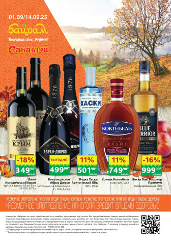 . Мы опубликовали акцию Алкоголь!, действие которой начинается 1 Сентября и заканчивается 14 Сентября. Поэтому если Вы житель города Уфа либо же его гость, детальненько изучите данные предложения. Вполне возможно, здесь есть именно те скидки в супермаркетах, что Вы так давно и безутешно искали. Вооружитесь знаниями и вперед в ближайший к Вам магазин на шопинг! Только будьте бдительны и внимательно смотрите на дату, вдруг акция уже закончилась или еще не началась.