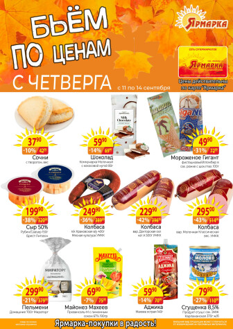 . Мы опубликовали акцию Бьем по ценам с четверга, действие которой начинается 11 Сентября и заканчивается 14 Сентября. Поэтому если Вы житель города Уфа либо же его гость, детальненько изучите данные предложения. Вполне возможно, здесь есть именно те скидки в супермаркетах, что Вы так давно и безутешно искали. Вооружитесь знаниями и вперед в ближайший к Вам магазин на шопинг! Только будьте бдительны и внимательно смотрите на дату, вдруг акция уже закончилась или еще не началась.