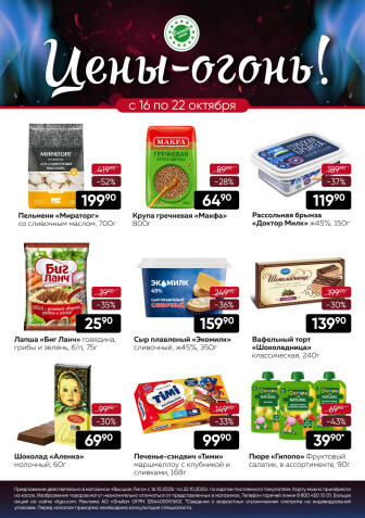 . Мы опубликовали акцию Цены-огонь!, действие которой начинается 16 Октября и заканчивается 22 Октября. Поэтому если Вы житель города Ярославль либо же его гость, детальненько изучите данные предложения. Вполне возможно, здесь есть именно те скидки в супермаркетах, что Вы так давно и безутешно искали. Вооружитесь знаниями и вперед в ближайший к Вам магазин на шопинг! Только будьте бдительны и внимательно смотрите на дату, вдруг акция уже закончилась или еще не началась.