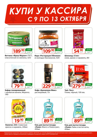 . Мы опубликовали акцию Купи у кассира, действие которой начинается 9 Октября и заканчивается 13 Октября. Поэтому если Вы житель города Ярославль либо же его гость, детальненько изучите данные предложения. Вполне возможно, здесь есть именно те скидки в супермаркетах, что Вы так давно и безутешно искали. Вооружитесь знаниями и вперед в ближайший к Вам магазин на шопинг! Только будьте бдительны и внимательно смотрите на дату, вдруг акция уже закончилась или еще не началась.