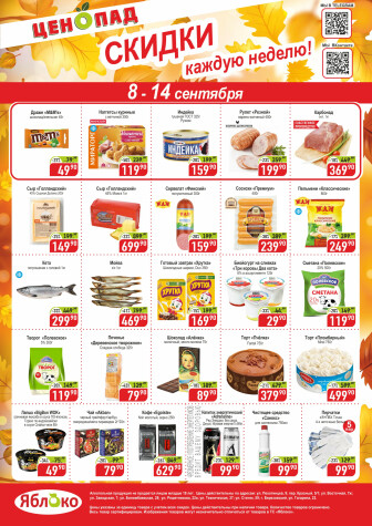 . Мы опубликовали акцию Ценопад, действие которой начинается 8 Сентября и заканчивается 14 Сентября. Поэтому если Вы житель города Екатеринбург либо же его гость, детальненько изучите данные предложения. Вполне возможно, здесь есть именно те скидки в супермаркетах, что Вы так давно и безутешно искали. Вооружитесь знаниями и вперед в ближайший к Вам магазин на шопинг! Только будьте бдительны и внимательно смотрите на дату, вдруг акция уже закончилась или еще не началась.