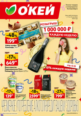 . Мы опубликовали акцию Каталог регулярных предложений, действие которой начинается 11 Сентября и заканчивается 24 Сентября. Поэтому если Вы житель города Екатеринбург либо же его гость, детальненько изучите данные предложения. Вполне возможно, здесь есть именно те скидки в супермаркетах, что Вы так давно и безутешно искали. Вооружитесь знаниями и вперед в ближайший к Вам магазин на шопинг! Только будьте бдительны и внимательно смотрите на дату, вдруг акция уже закончилась или еще не началась.